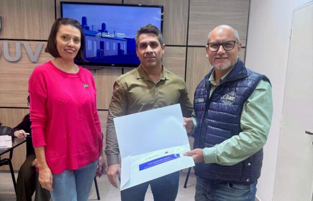 El presidente del IPDUV, Fernando Berecoechea, entregó los certificados del programa «Chaco a la obra», que permite a los adjudicatarios acceder a una asistencia financiera. El acto se realizó en el salón del organismo “Cancio Ramírez”.