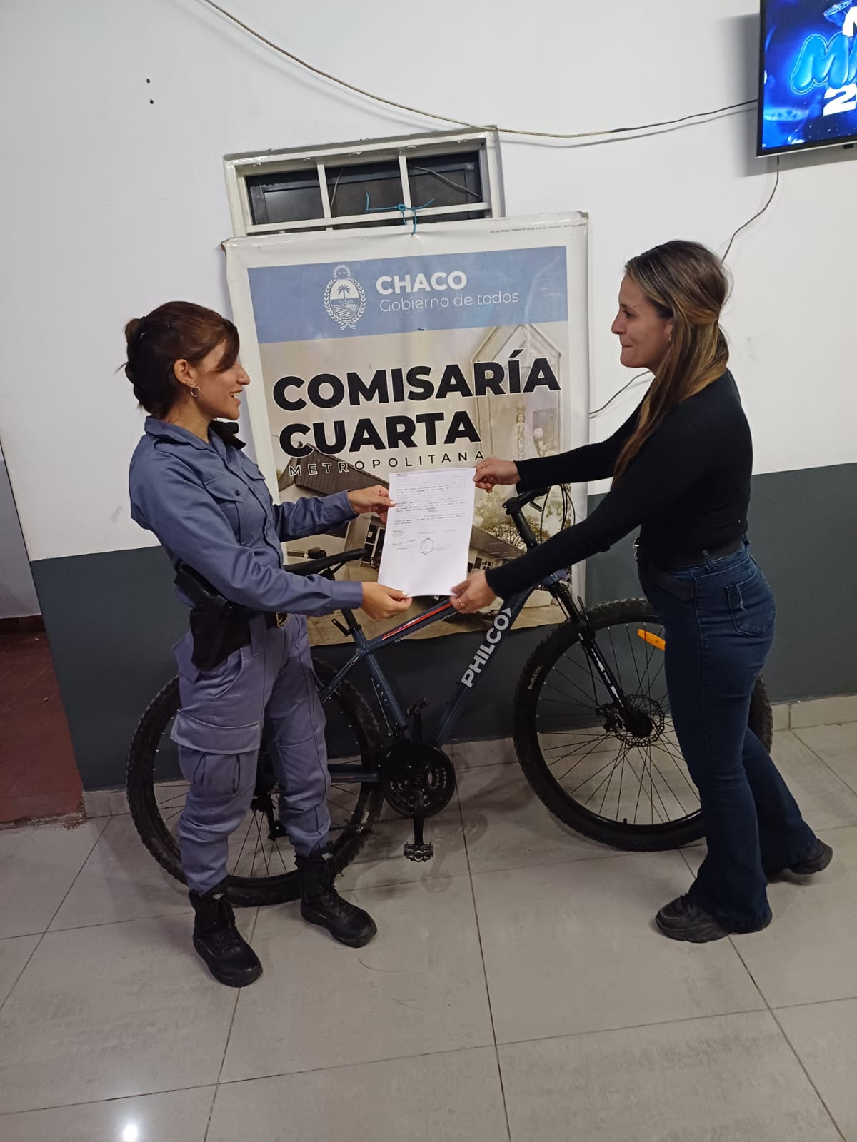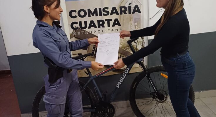 Los agentes incautaron el rodado y lo trasladaron hasta la dependencia policial donde la damnificada reconoció el elemento como de su propiedad y se lo restituyeron.