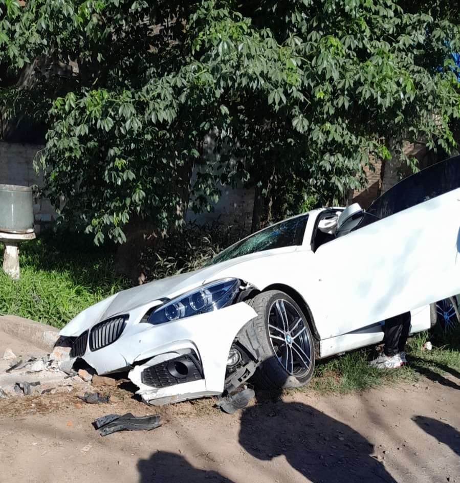 Esta mañana, se tomó conocimiento sobre un siniestro vial sobre avenida Antonio Martina al 1450. Al llegar al lugar, se constató veracidad, estableciendo que se trata de automóvil marca BMW, modelo 2201, color blanco, guiado por un hombre de 28 años, acompañado por otro ciudadano de 38 años, por dichos del chófer, momentos antes al estar circulando por la calle mencionada, por el estado de la misma perdió el control del rodado, cayó a una zanja e impacto sobre puente de concreto. Producto del siniestro, ambos terminaron con lesiones