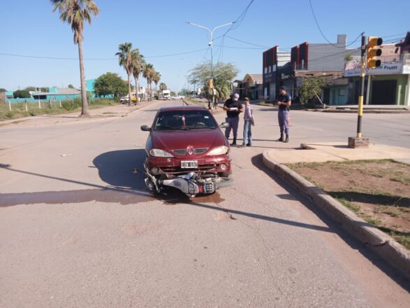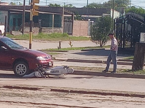 En la mañana de hoy, a las 09:20 horas, se registró un accidente de tránsito en la intersección de Av. Güemes y C/ Crucero Gral. Belgrano, en la ciudad, entre un automóvil y una motocicleta.