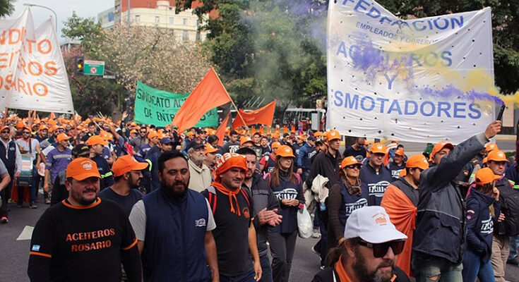 La Federación de Trabajadores del Complejo Industrial Oleaginoso, Desmotadores de Algodón y Afines de la República Argentina (FTCIODyARA), anunció una huelga por tiempo indeterminado a partir de este miércoles 12 de junio, desde las 00.00 horas, para exigir al Senado de la Nación que rechace la Ley de Bases que se votará ese día en el Congreso.