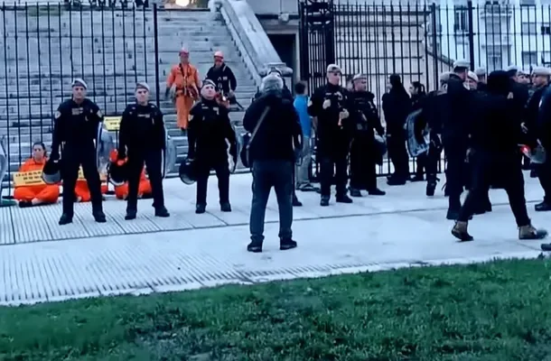 ACTIVISTAS DE GREENPEACE SE TREPARON A UN MONUMENTO FRENTE AL CONGRESO EN PROTESTA CONTRA LA LEY DE GLACIARES