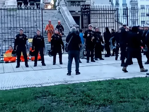 ACTIVISTAS DE GREENPEACE SE TREPARON A UN MONUMENTO FRENTE AL CONGRESO EN PROTESTA CONTRA LA LEY DE GLACIARES