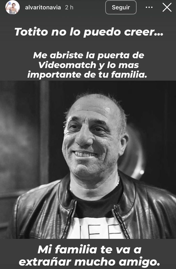 Con una foto del rostro de Toti en blanco y negro, arrancó escribiendo: «Totito no lo puedo creer…» y siguió: «me abriste la puerta de Videomatch y lo más importante de tu familia»