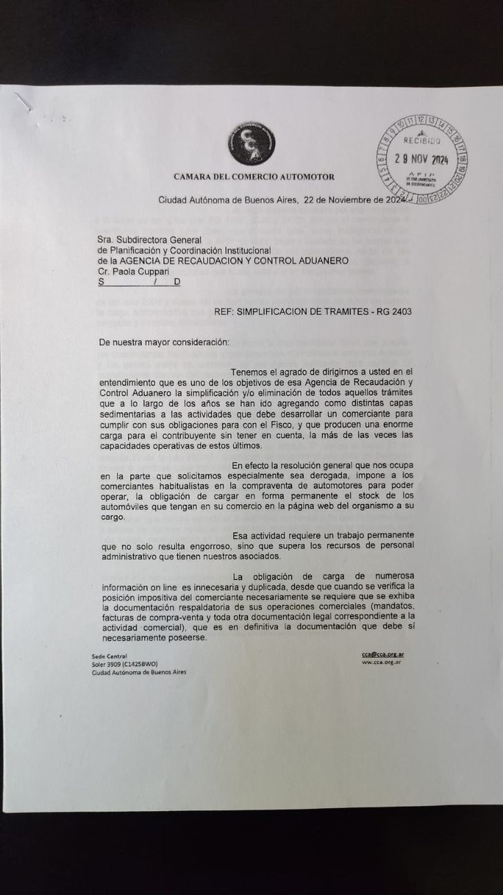 Desde el sector añadieron que “los niveles de control de acuerdo a la normativa de AFIP que nos habían puesto, había que informar como concesionario, inclusive, si sacaba un auto para llevarlo al taller o al lavadero”. “Una cosa de loco, así que estamos muy contentos”.