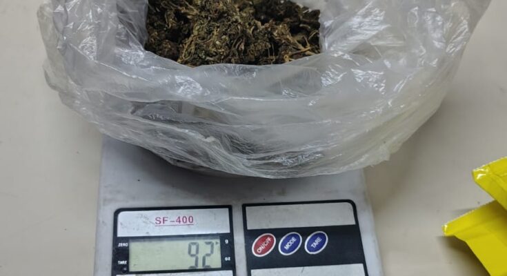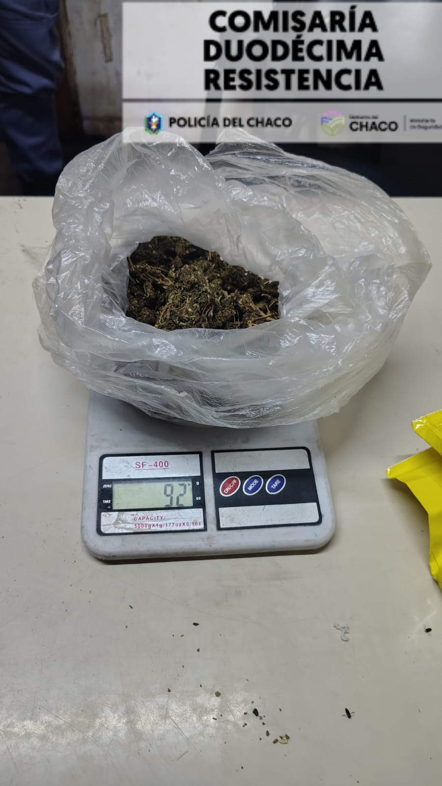 Los agentes especializados efectuaron la prueba de campo, que arrojó resultado positivo para cannabis sativa, con un peso total de 92 gramos.
