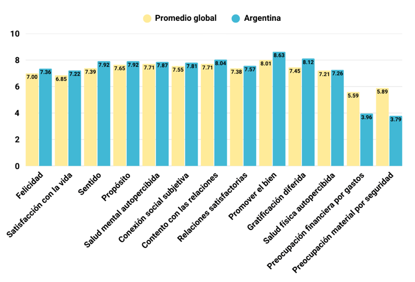 | La paradoja argentina del bienestar Los resultados muestran un patrón particular: altos niveles de florecimiento en dimensiones personales y relacionales que coexisten con fragilidad socioeconómica. “Nuestro estudio muestra que el nivel de florecimiento de los adultos, es decir, el grado en que las personas experimentan bienestar integral, se ubica por encima del promedio conjunto de todos los países participantes en el GFS en las dimensiones de bienestar psicológico, bienestar social y carácter y conducta prosocial”, explica Claudia Vanney, investigadora de la Universidad Austral y una de las autoras del estudio. “Paradójicamente, los niveles de bienestar vinculados a resultados socioeconómicos se encuentran muy por debajo del promedio general. Esto nos permite plantear la hipótesis de que nuestro contexto, en comparación con otros países, podría compensar en parte esta situación a través de otros factores positivos: la ausencia de climas extremos, desastres naturales de gran magnitud, conflictos sociales generalizados o guerras; las oportunidades que brinda el país mediante el acceso gratuito a la educación y al sistema público de salud; la posibilidad de vivir cerca de la naturaleza; y, de manera especialmente relevante, la religión”, agregó Vanney, quien además es directora del Instituto de Filosofía de la Universidad Austral. Religiosidad y florecimiento El estudio también identifica una asociación entre religiosidad y mayores niveles de florecimiento en la población argentina. “Este último factor fue analizado en profundidad en el trabajo. Los resultados muestran que los adultos argentinos que se identifican como cristianos presentan niveles más altos de florecimiento en comparación con personas no religiosas que comparten características demográficas similares. Asimismo, una mayor frecuencia de asistencia a servicios religiosos se asocia con niveles más elevados de florecimiento”, señala Vanney. Sobre la investigación El estudio fue realizado por Claudia E. Vanney, Belén Mesurado, Arturo L. Fitz Herbert, Tim Lomas, R. Noah Padgett, Brendan Case, Richard G. Cowden, Ying Chen, Byron R. Johnson y Tyler J. VanderWeele, y publicado en la revista académica International Journal of Wellbeing. Sus resultados aportan evidencia empírica para el monitoreo del bienestar a nivel poblacional y abren nuevas líneas de investigación sobre los factores que sostienen el florecimiento humano en contextos sociales complejos.