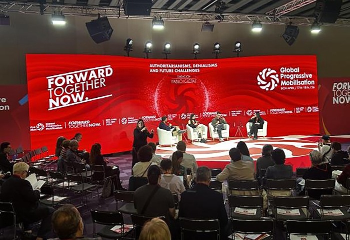 La primera edición de la Global Progressive Mobilisation (GPM) ha dado comienzo este viernes en el pabellón 8 de la Fira de Barcelona, un recinto de más de 25.000m2 que acogerá hasta este sábado la primera cita global de los progresistas de todo el mundo, que pretende ser una demostración de fuerza frente al auge del trumpismo y de la ultraderecha que recorre el mundo.