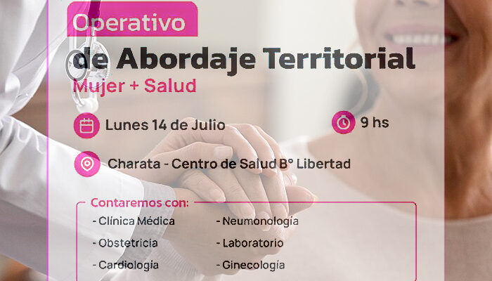 Con el firme compromiso de garantizar el derecho a la salud y acercar el sistema sanitario a cada rincón del territorio, el Gobierno del Chaco llevará adelante dos operativos “Mujer + Salud” en la ciudad de Charata, este lunes 14 y el jueves 17 a partir de las 9 Hs.