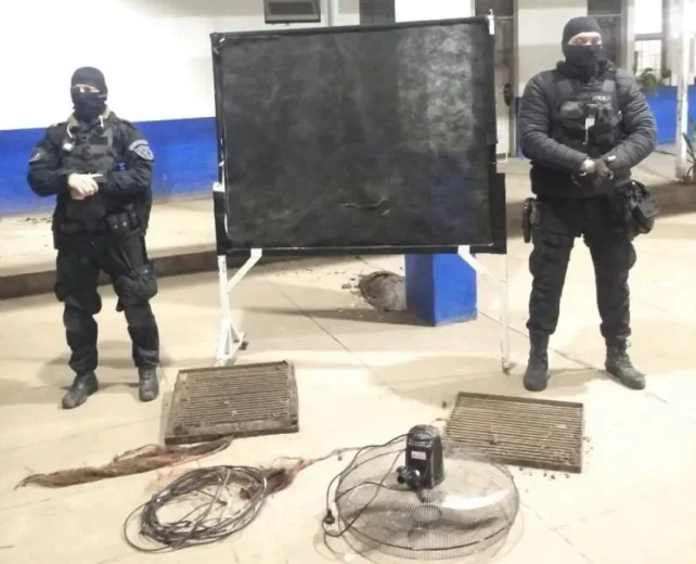 Durante la inspección, constataron que una de las puertas de ingreso a los salones había sido violentada y que el ventilador de pared faltante fue encontrado escondido en el sector de huertas de la escuela.