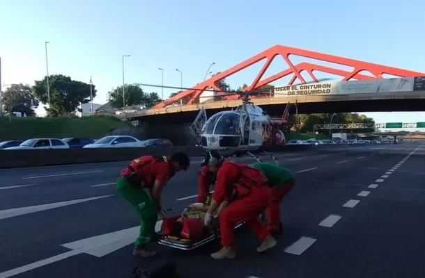 Este jueves comenzó con el tráfico cargado en la avenida General Paz. En ese contexto, un helicóptero del SAME aéreo debió descender sobre la autopista que divide CABA de la provincia de Buenos Aires, para auxiliar a un motociclista que resultó herido tras chocar con un auto.