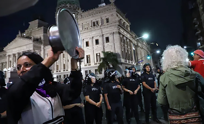 La violenta represión policial que se dio en la tarde de este miércoles en las afueras del Congreso durante la manifestación de jubilados y hinchas de clubes de fútbol generó un fuerte repudio en toda la ciudad de Buenos Aires y cientos de personas salieron a las calles y a sus balcones a cacerolear.