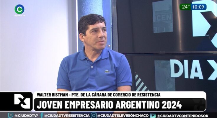 Walter Bistman, presidente de la Cámara de Comercio de Resistencia, visitó los estudios de CIUDAD TV tras la entrega del premio Joven Empresario Argentino realizada por la Confederación de la Pequeña y Mediana Empresa (CAME) este jueves en el marco del Día del Joven Empresario.