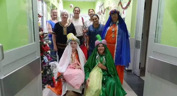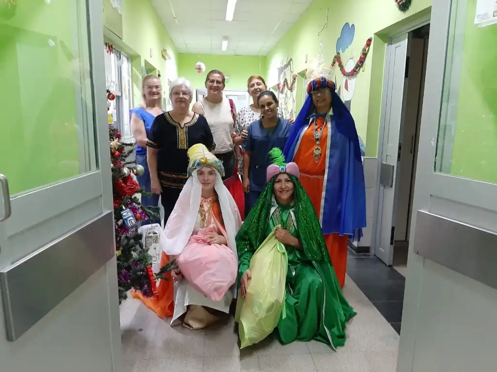 Las Reinas Magas son del equipo de Mujeres Radicales Solidarias, que se juntan todos los años, primero a juntar la donaciones y luego a visitar el nosocomio local.