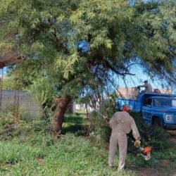 El equipo de podas de la Secretaría de Ambiente procedió a dar forma a los frondosos algarrobos del lugar, realizando una labor exhaustiva y detallada para asegurar que los árboles sigan siendo un elemento característico y emblemático del lugar.