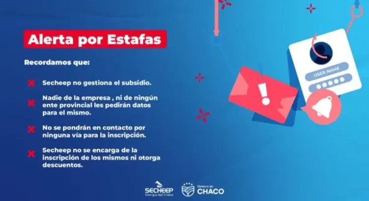 Ante las denuncias recibidas por intentos de estafas telefónicas, SECHEEP reitera y advierte a la comunidad que desde la empresa energética no se realiza la inscripción al subsidio nacional a la tarifa eléctrica. Además, no existen agentes y/o gestores que llamen o se pongan en contacto con los clientes para ofrecer descuentos o inscripción al subsidio. En ese marco, se aconseja denunciar este tipo de contactos ya que son realizados por presuntos estafadores.