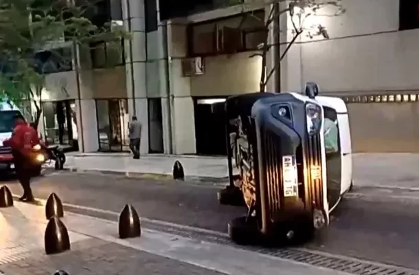 Un fuerte choque ocurrió este martes en el barrio porteño de Retiro, en donde una camioneta impactó con un bolardo y volcó. El conductor quedó herido con politraumatismos.