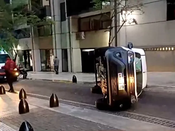 El hecho ocurrió en Basavilbaso y Juncal. Según informó C5N, el conductor de la camioneta no vio el bolardo que dividen la zona peatonal con la calle, perdió el control y terminó cayendo al asfalto de costado.