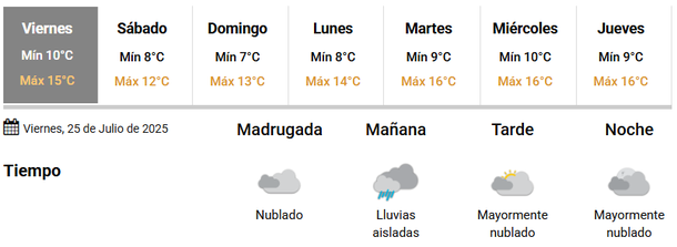 Para el miércoles 30 no se pronostican demasiados cambios: todavía con el viento soplando desde el Norte primero y desde el Noreste después, el firmamento seguirá encapotado y las temperaturas se mantendrán en el rango de los 10° a los 16°.