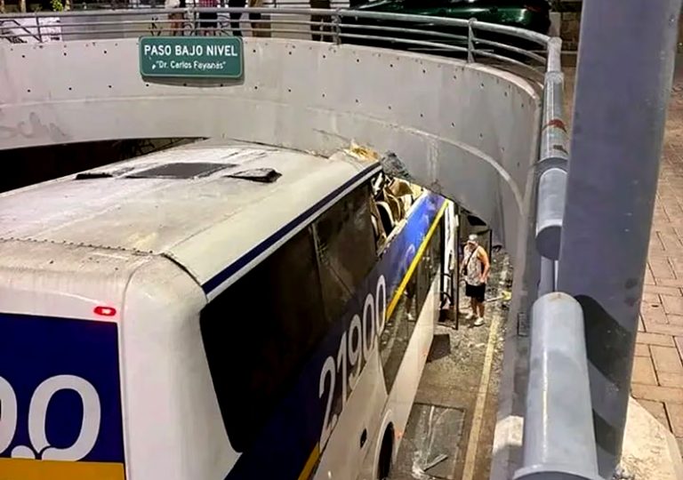 En medio de ese operativo, el colectivo fue desviado por un bajo que no tenía la altura suficiente, lo que derivó en el accidente. Detrás del vehículo afectado circulaban otros dos micros.