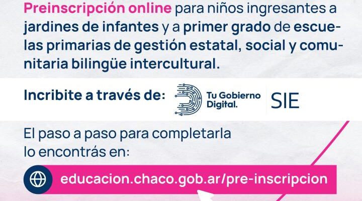 Más información disponible en educacion.chaco.gob.ar/preinscripcion2026-inicial-y-primario