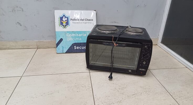 Durante un patrullaje, el personal policial localizó a los sospechosos en la calle Uriburu al 380 aproximadamente. Se trataba de un hombre de 36 años y un joven de 21, quienes llevaban consigo un horno eléctrico marca Axel, color negro, no pudieron justificar.