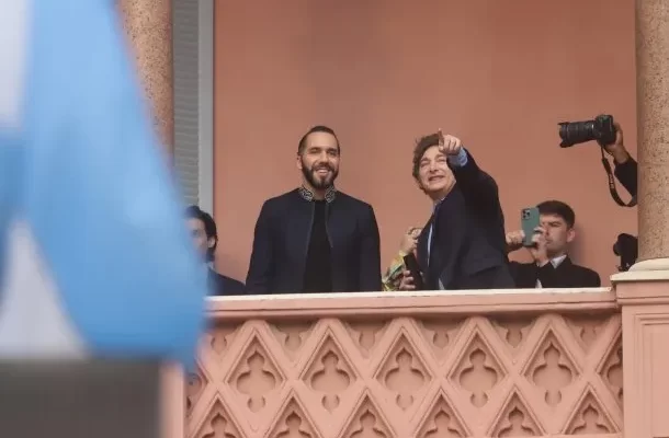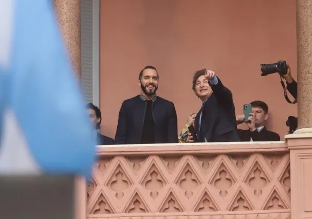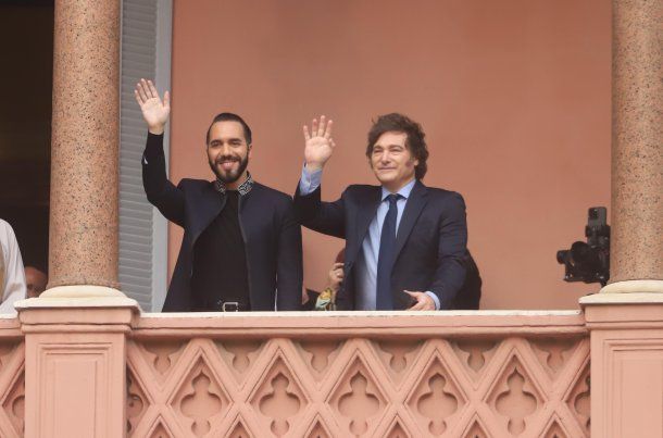 Javier Milei y Nayib Bukele, en el balcón de la Casa Rosada.