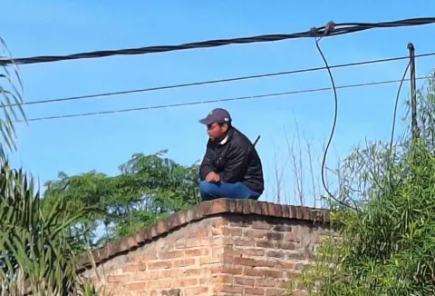 La Policía del Chaco le confirmó a este medio que, hasta pasadas las 19 , el hombre permanece aún en la finca, arriba del techo y teniendo en su poder la escopeta, solicitando la presencia del Fiscal en turno y de «alguna autoridad que le garantice entrega inmediata de la casa» y que «de ir detenido, se quitará la vida».