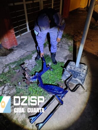 Una vez en el lugar, el rodado fue examinado por el personal, quienes corroboraron que las numeraciones de motor y chasis se encontraban sobre «BASES REBAJADAS CON DIGITOS NO ORIGINALES DE FABRICA», además de los dominios falsos.