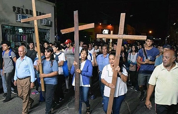 El Vía Crucis finalizaría alrededor de las 9.45 del 3 de abril, tras completar el extenso trayecto que conecta ambas capitales provinciales.