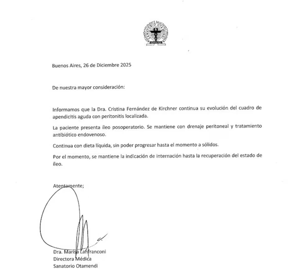 Horas más tarde, la directora médica del establecimiento, Marisa Lanfranconi, confirmó mediante un comunicado que la líder del Partido Justicialista tuvo que ser sometida a una cirugía de urgencia, la cual se desarrolló de manera exitosa.