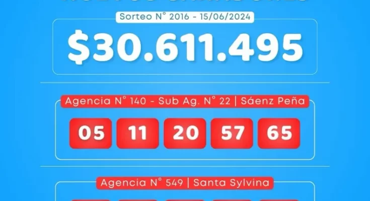 La suerte se repartió entre los ganadores que son de Sáenz Peña y de Santa Sylvina. El primero, ganó gracias a un ticket con los números 05, 11, 20, 57, 65 jugado en la agencia N° 140, sug agencia N° 22 de la ciudad capitalina.