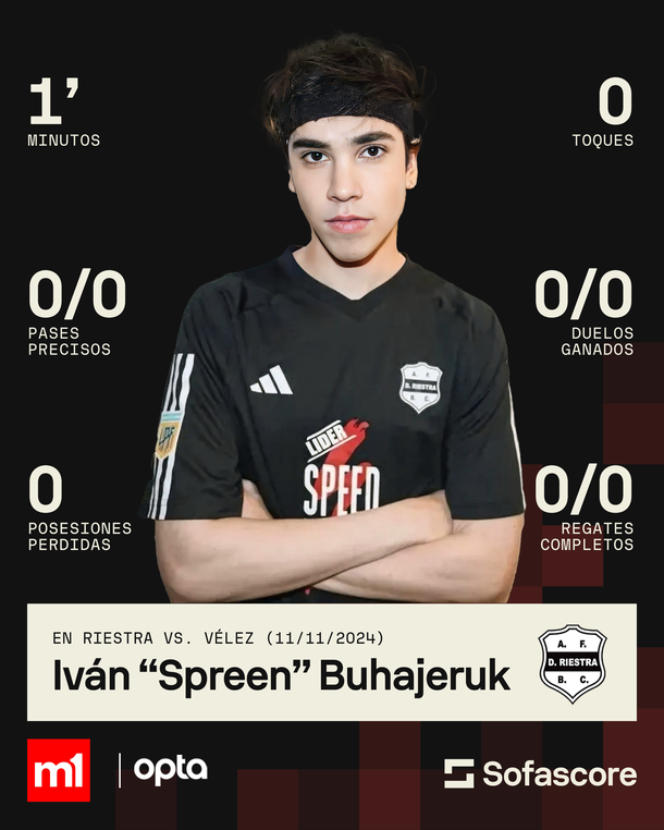 Las estadísticas de Spreen en su debut en Deportivo Riestra