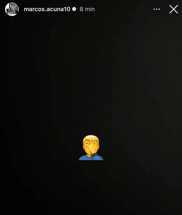 En tanto, en simultáneo con el comienzo del partido y la posterior sustitución de Spreen, el lateral de River y campeón del mundo con la Selección Argentina, Marcos Acuña, publicó una misteriosa historia de Instagram que parecía meterse de lleno en esta polémica.