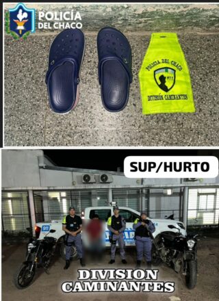 Según informaron los motoristas intervinientes, el sospechoso ingresó al local y tomó una ojota tipo “Crocs”, marca Valeyu de color azul, intentando retirarse sin abonarla. La encargada del comercio lo reconoció y alertó a la prevención que patrullaba la zona.