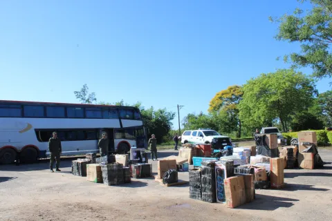 La mercadería del rubro electrónica, tienda y bazar, estaba acondicionada en varios bultos distribuidos en los asientos y pasillo del micro, sin el correspondiente aval legal aduanero.