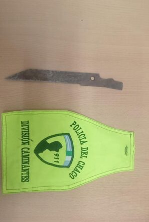 Tras ser identificado, detectaron que poseía un cuchillo de 20 cm con mango de hierro. Lo que derivo a que se inicien actuaciones por portación de arma blanca