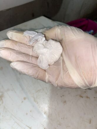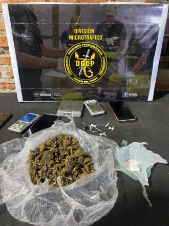 Revisaron cada rincón de la vivienda y hallaron un envoltorio con sustancia blanca, y otro con sustancia vegetal. Tras la prueba narco test descubrieron que se trataba de cocaína con el peso total de 11.4 gramos, y marihuana con el peso de 107 gramos. Además, secuestraron tres balanzas de precisión, un teléfono celular y la suma de $37.850 pesos, estos elementos estarían vinculados a la venta de estupefacientes.