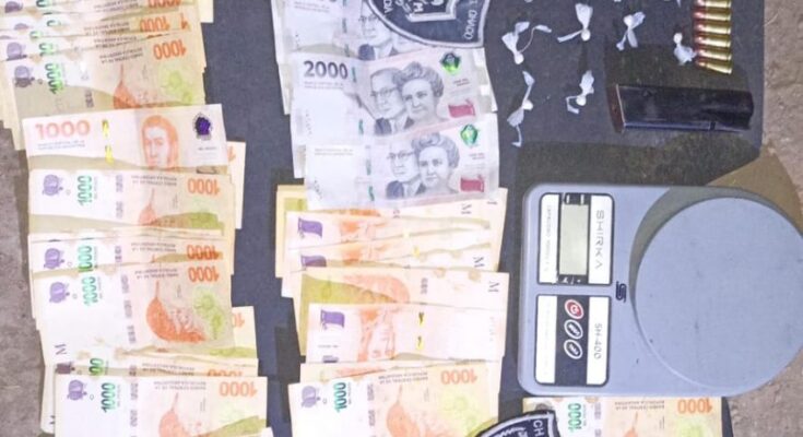Después de identificarlo, tratándose de un joven de 24 años a bordo de un Toyota, modelo Etios, los agentes le solicitaron que exhiba sus pertenecías, descubriendo que llevaban una bolsa con 32 bolsitas de color, una pistola calibre 9mm, 10 cartuchos del mismo calibre, una balanza digital y la suma en efectivo de $150.000 pesos.
