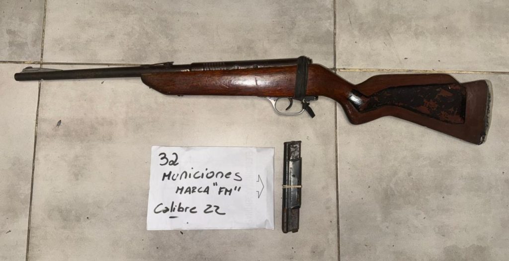 Durante la intervención, junto con el personal de la Comisaria Puerto Vilelas, identificaron que tenía en su poder un rifle calibre 22, dos cargadores y 32 cartuchos del mismo calibre. El hombre no contaba con ninguna documentación que acreditara la tenencia del arma, por lo que fue inmediatamente demorado y el material fue secuestrado.