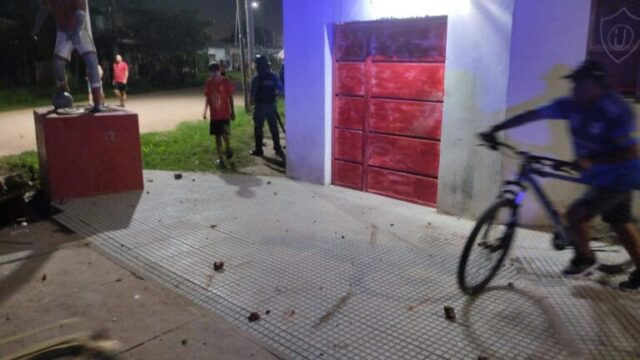 Secuestro de ladrillos, cascotes y otros elementos contundentes y la denuncia del club local por el faltante de una pelota y daños en reflectores.