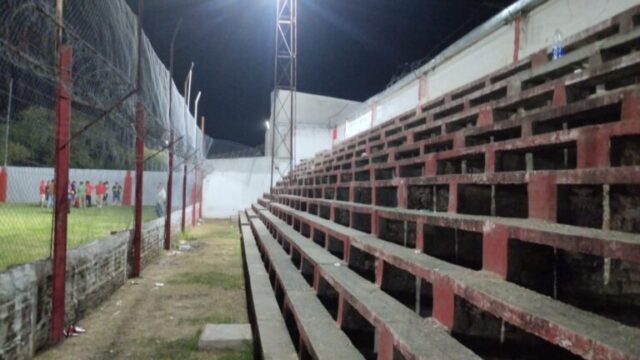Destrucción total del último escalón de la tribuna visitante, daños en el tejido perimetral y en el sistema lumínico (torre de iluminación).