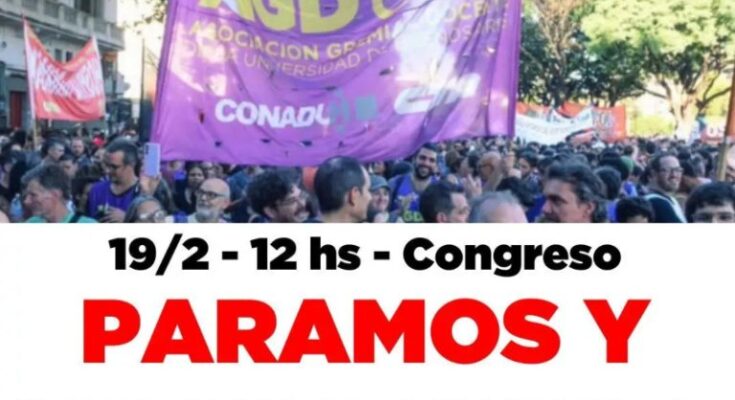 AGD-UBA, nucleada en la Conadu Histórica, convocó a un paro y movilización al Congreso de la Nación para el miércoles 19 de febrero a las 12. La protesta coincide con la posible sesión en la Cámara de Diputados en la que podría tratarse la reforma laboral, luego de su media sanción en el Senado.