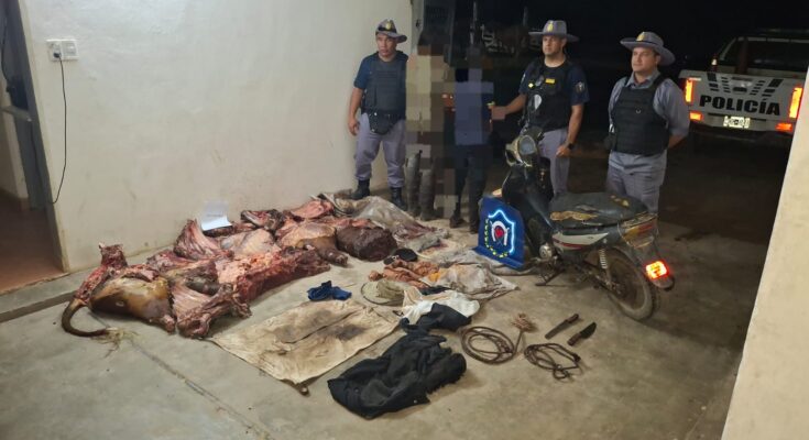 Se consultó con la fiscalía especial en delitos rurales y se dispuso que se instruyan actuaciones por Supuesto Abigeato, se secuestró el producto cárnico, una motocicleta, dos cuchillos, y prendas de vestir.