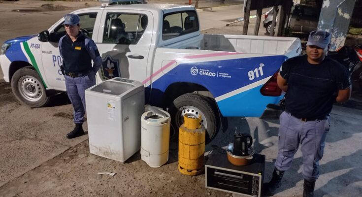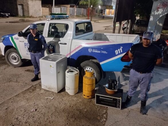 Por otra parte, pasada las 5 de la madruga de hoy, los efectivos de la Primera al recorrer la avenida Rodríguez Peña al 2.200 aproximadamente, observan a tres personas trasladar varios elementos de dudosa procedencia. Ante ello, los de la Quinta acudieron al lugar por razones de jurisdicción y en conjunto procedieron al secuestro de un lavarropas, un secarropas, una olla de cocina, un tubo de gas de 15 kilos, un horno eléctrico y una pava eléctrica. Dichos elementos fueron abandonados por estos ciudadanos al percatarse de la presencia policial, logrando huir hasta perderse de vista por las vías férreas.
