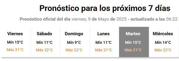 Para la semana que viene recién se anuncian lluvias para el miércoles 14 de mayo y luego de las tormentas comenzarán a bajar las marcas térmicas, al menos por unos días.