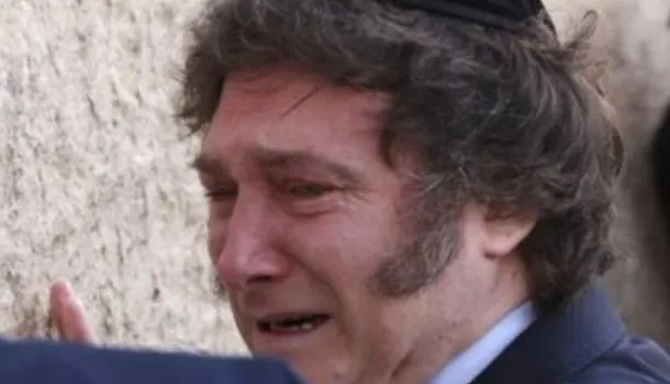 Milei llorando.