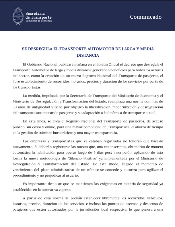Desde la Secretaría de Transporte, que dirige Franco Mogetta, se destacó que la medida generará «una mayor oferta de servicios y competencia de precios que beneficiará tanto a los usuarios como a las empresas y transportistas». Esta reforma apunta a mejorar la experiencia del usuario, que podrá acceder a más opciones y tarifas más competitivas, mientras que las empresas tendrán mayor flexibilidad para adaptarse a la demanda del mercado.