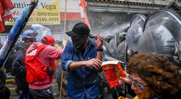Tras la fuerte represión policial sobre los manifestantes que protestaban contra la ley Bases, el Gobierno destacó y felicitó a las fuerzas federales por su “excelente accionar” sobre “los grupos terroristas”, a quienes acusaron de intentar “perpetrar un golpe de Estado”.