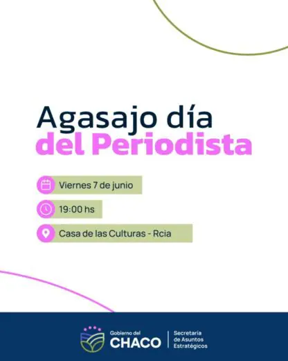 El gobierno de la provincia del Chaco, a través de la Secretaría de Asuntos Estratégicos, invita a los periodistas de la provincia a los agasajos previstos para este viernes 7 de junio. Uno de ellos, se realizará en Sáenz Peña y el otro encuentro será en la ciudad de Resistencia.